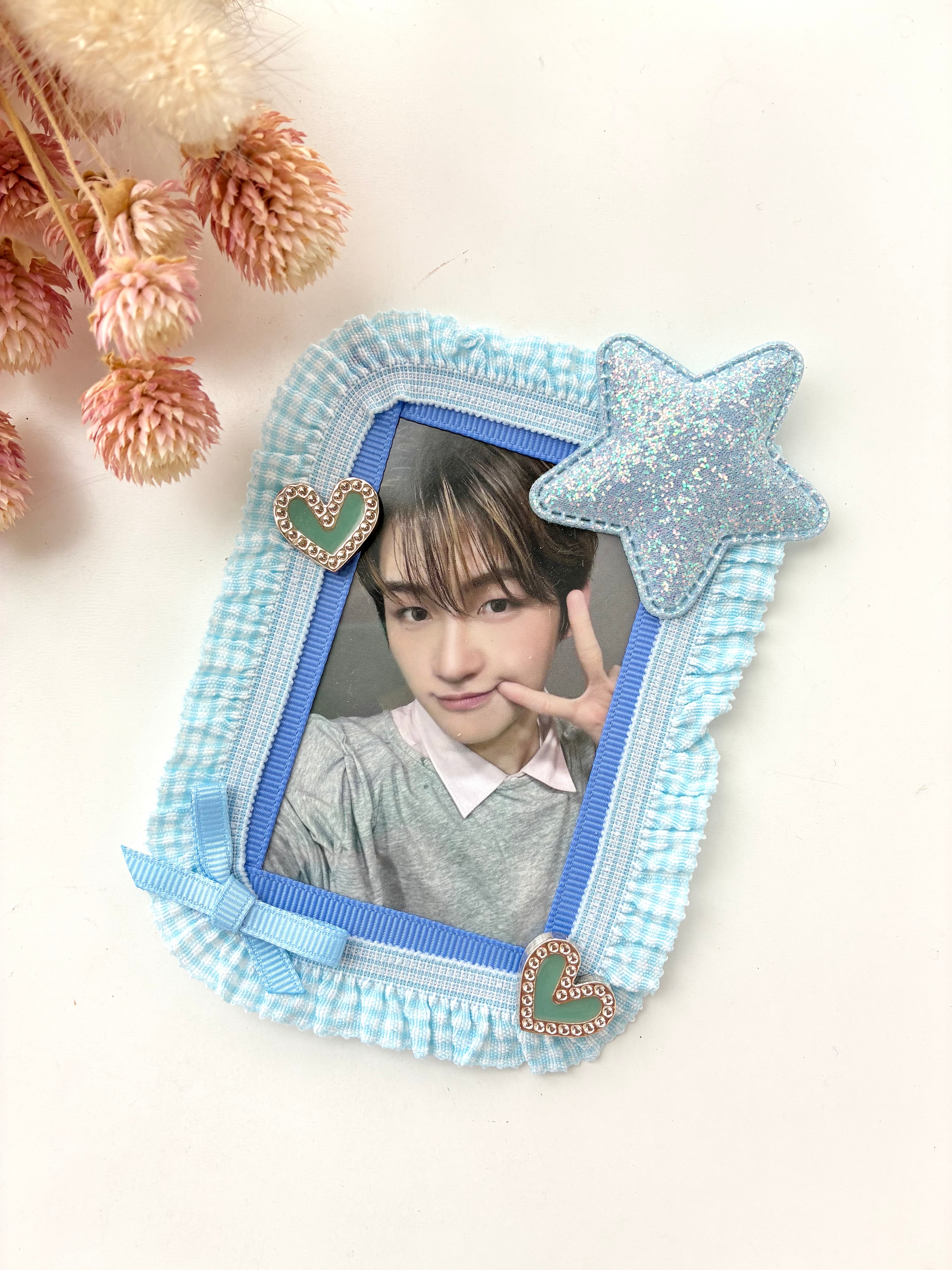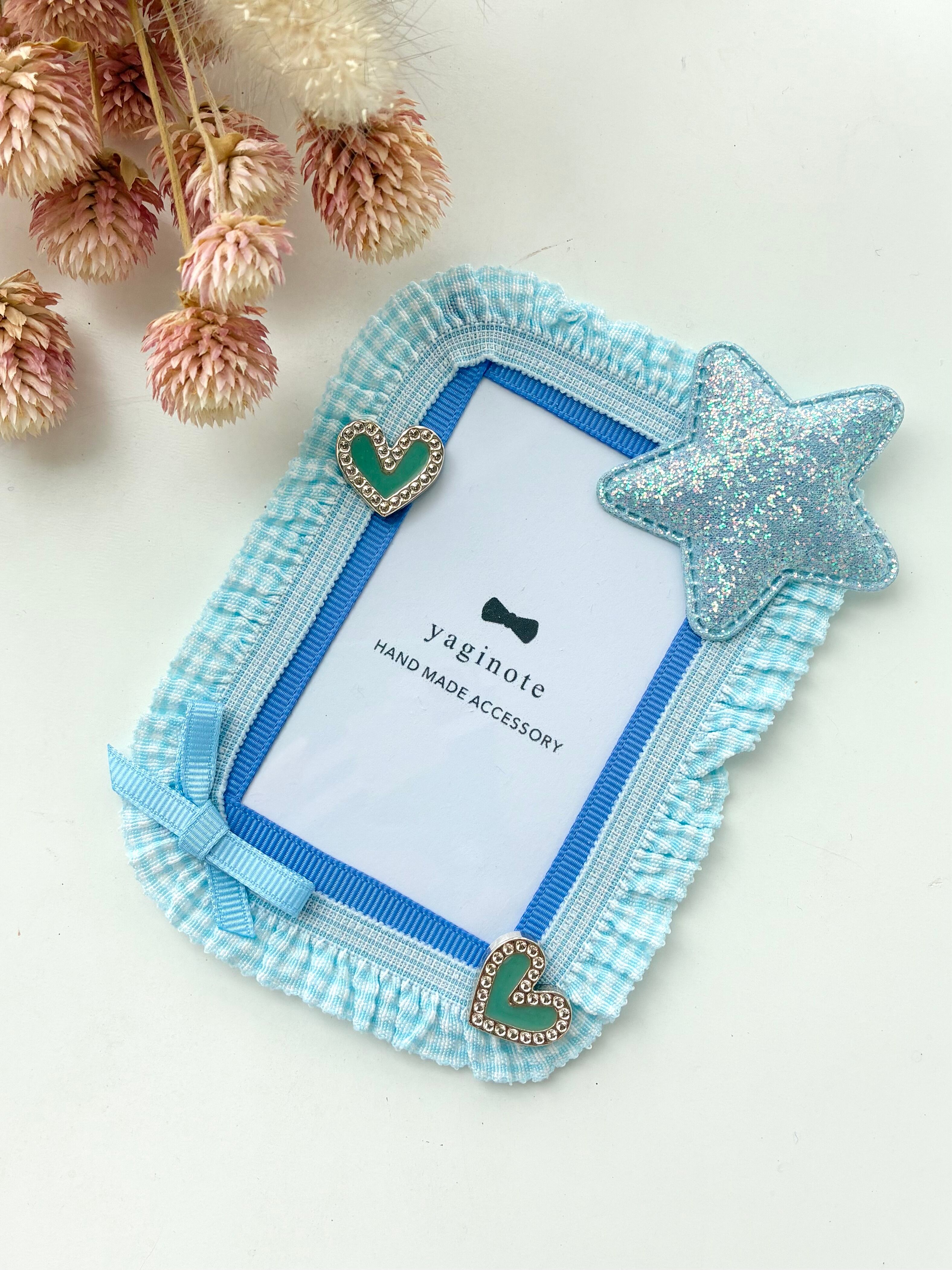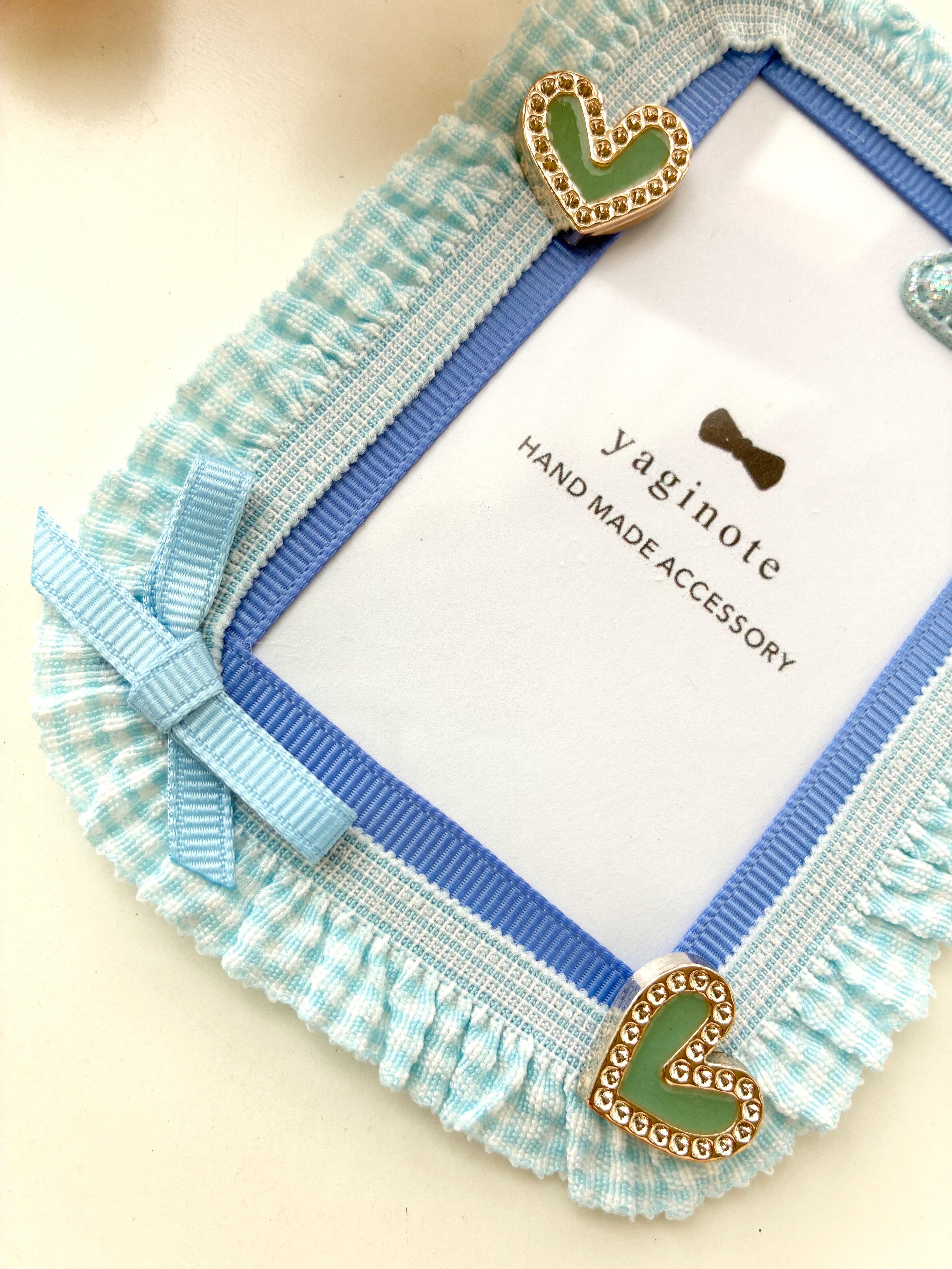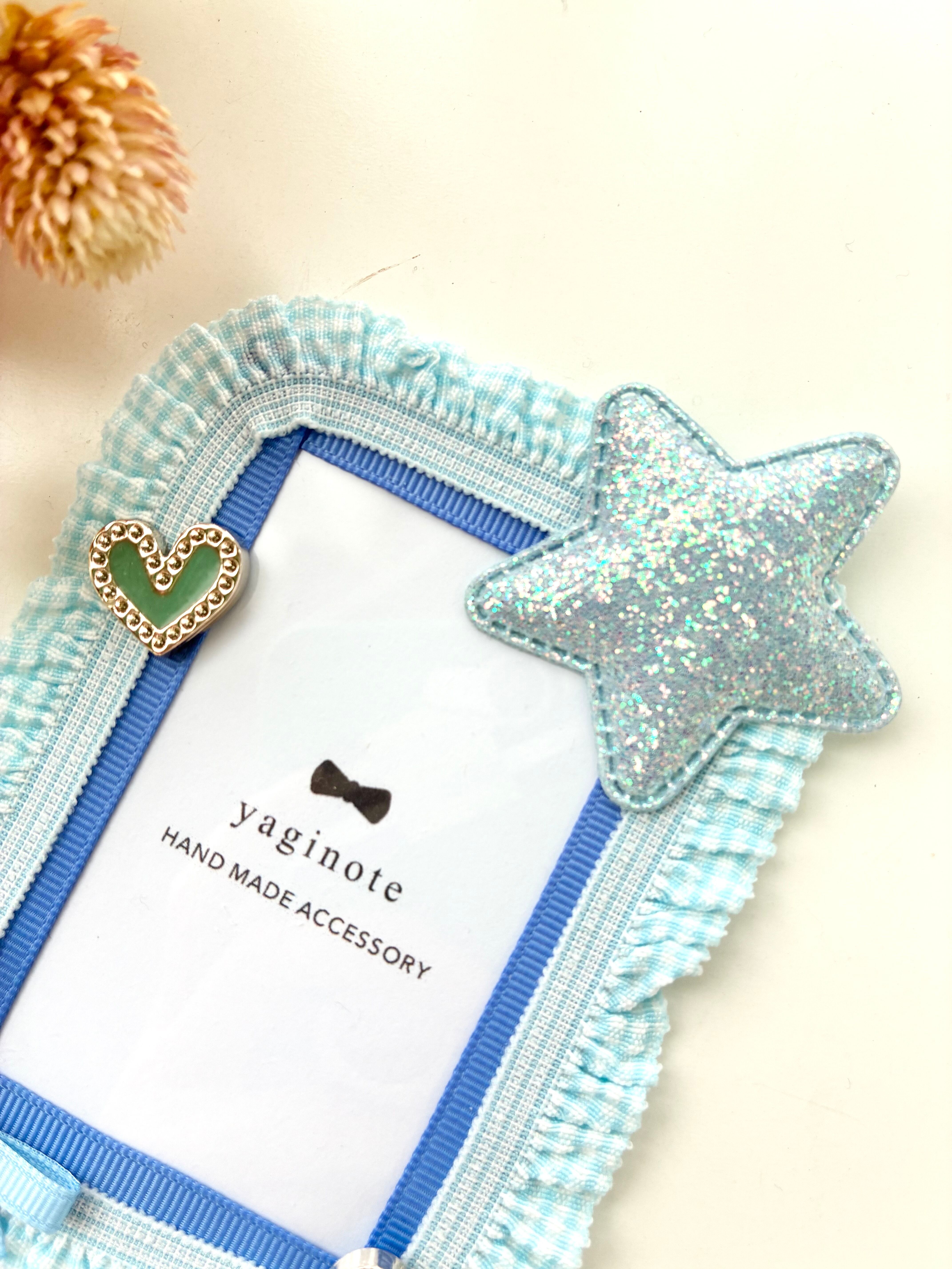 チェックのフリルが可愛いトレカケース:ライトブルー