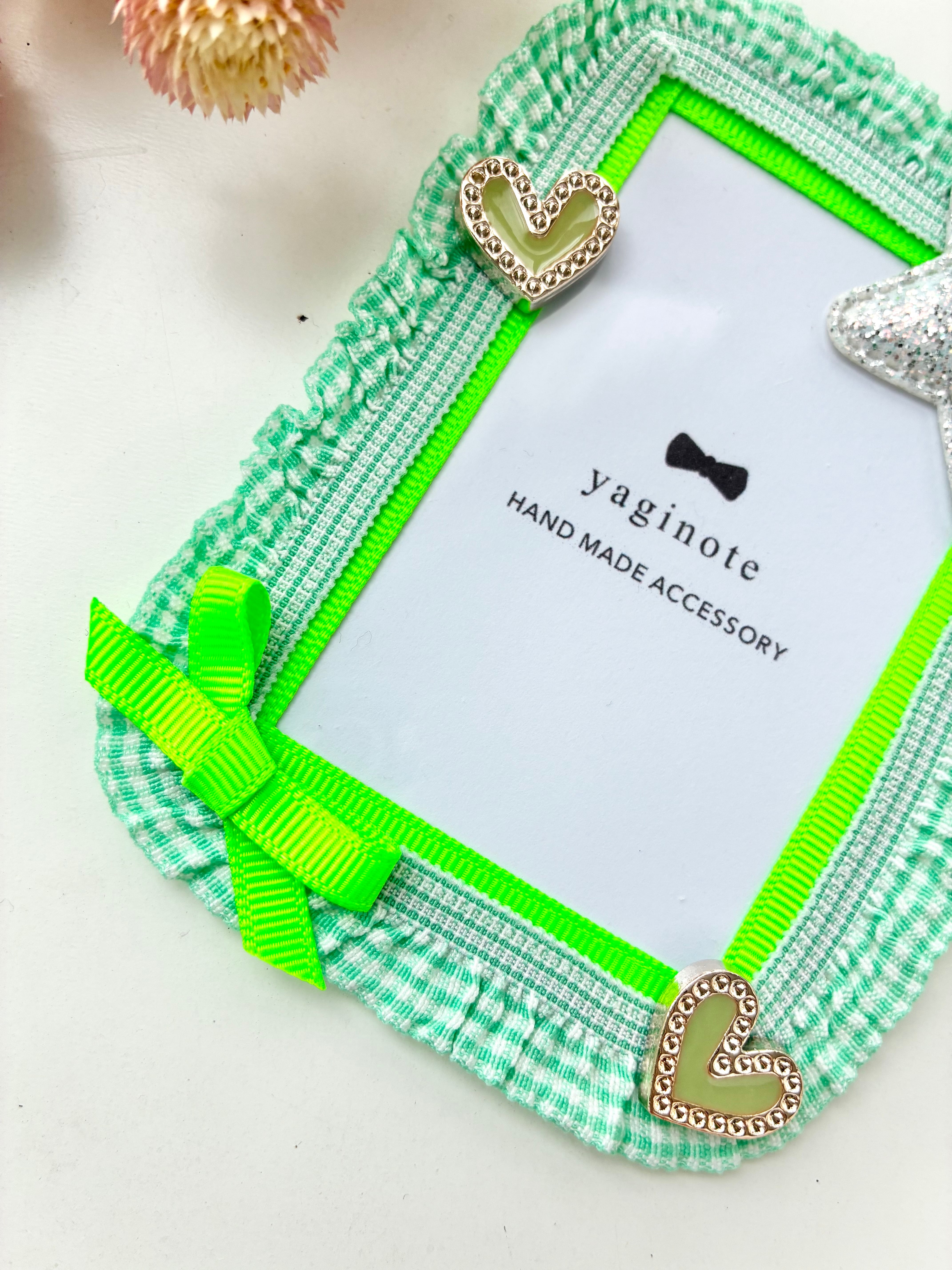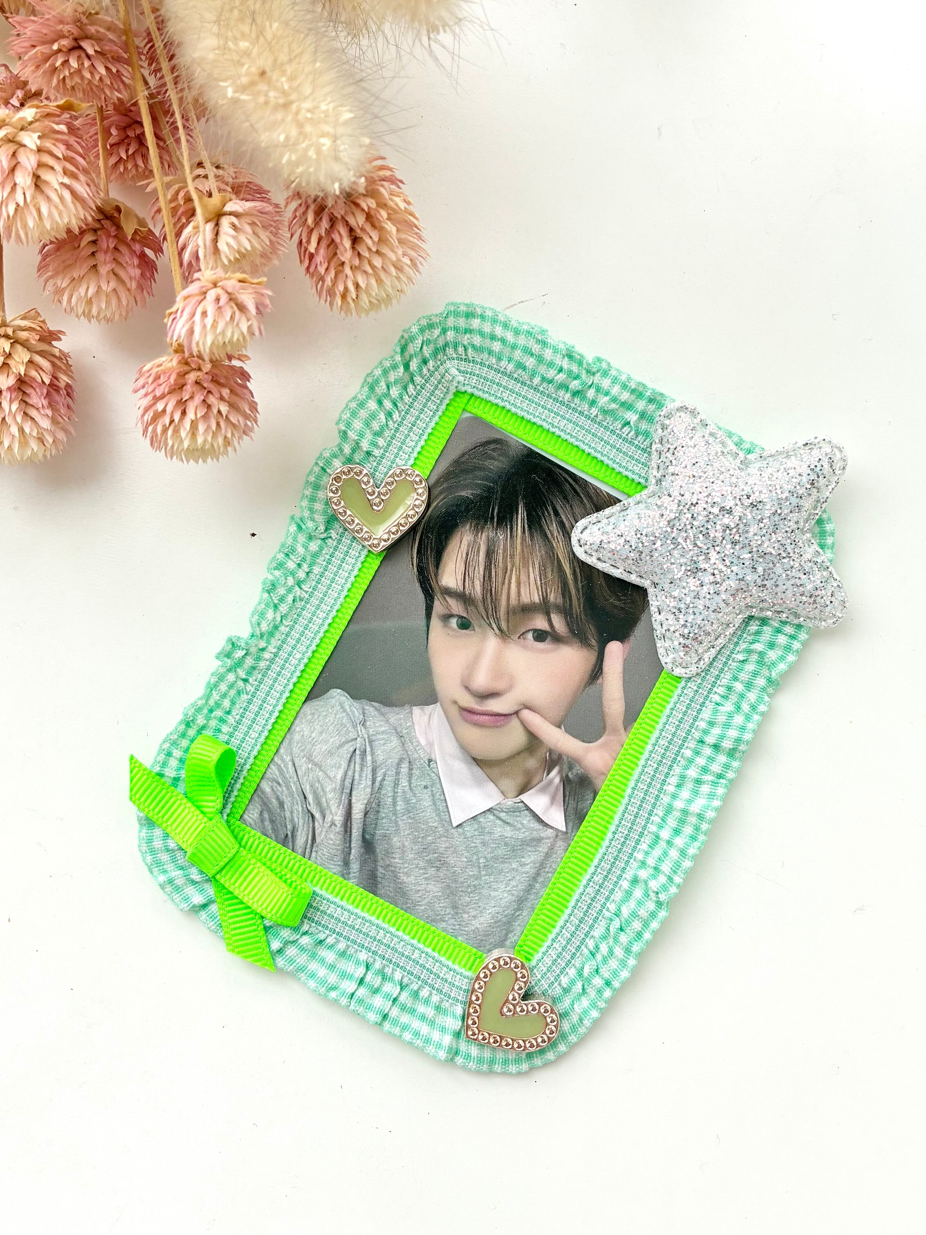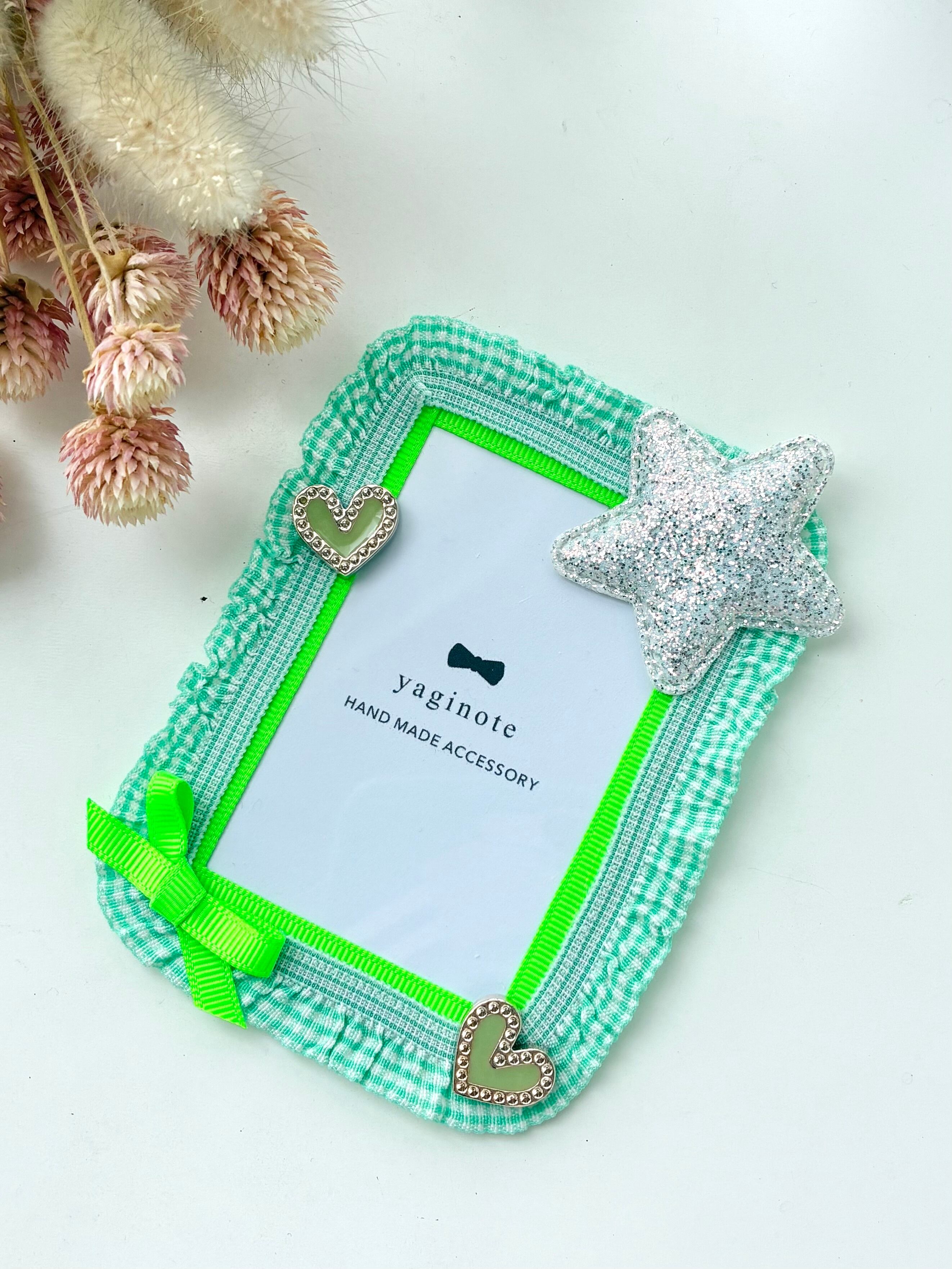 チェックのフリルが可愛いトレカケース:ライトグリーン