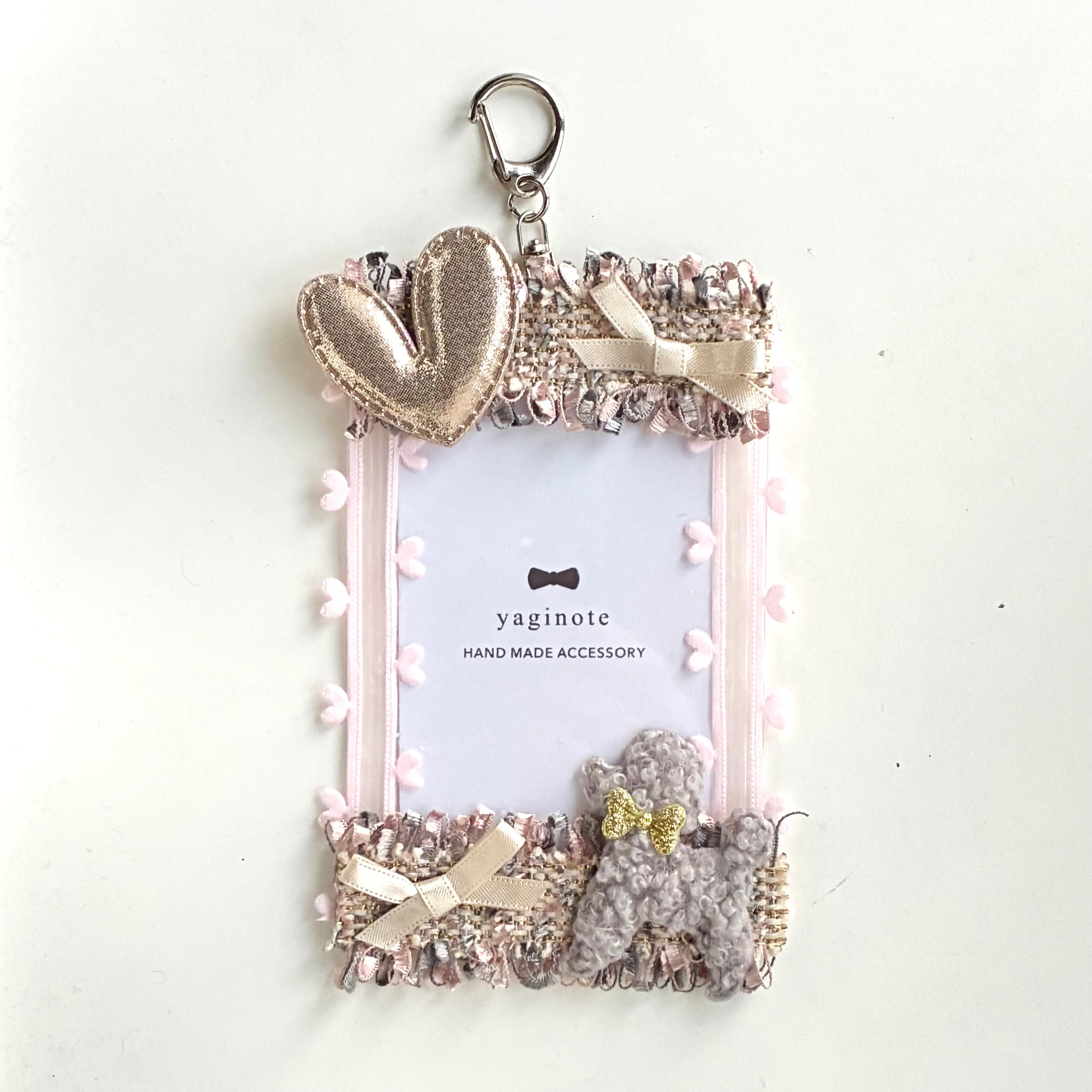 ピンクのハートリボンが、ツイードによく合って可愛いんです!モコモコプードルちゃんとツイードの相性もバッチリ!