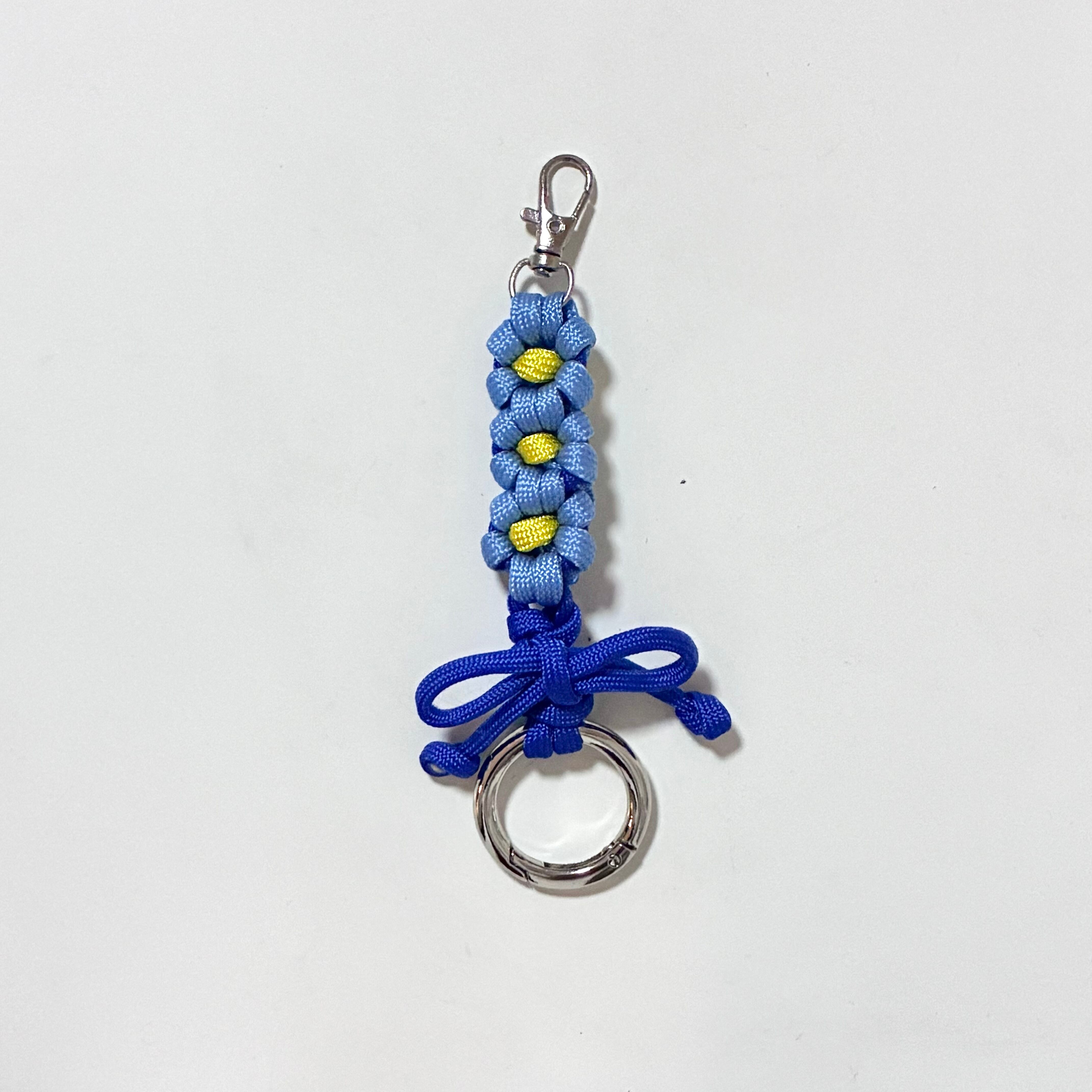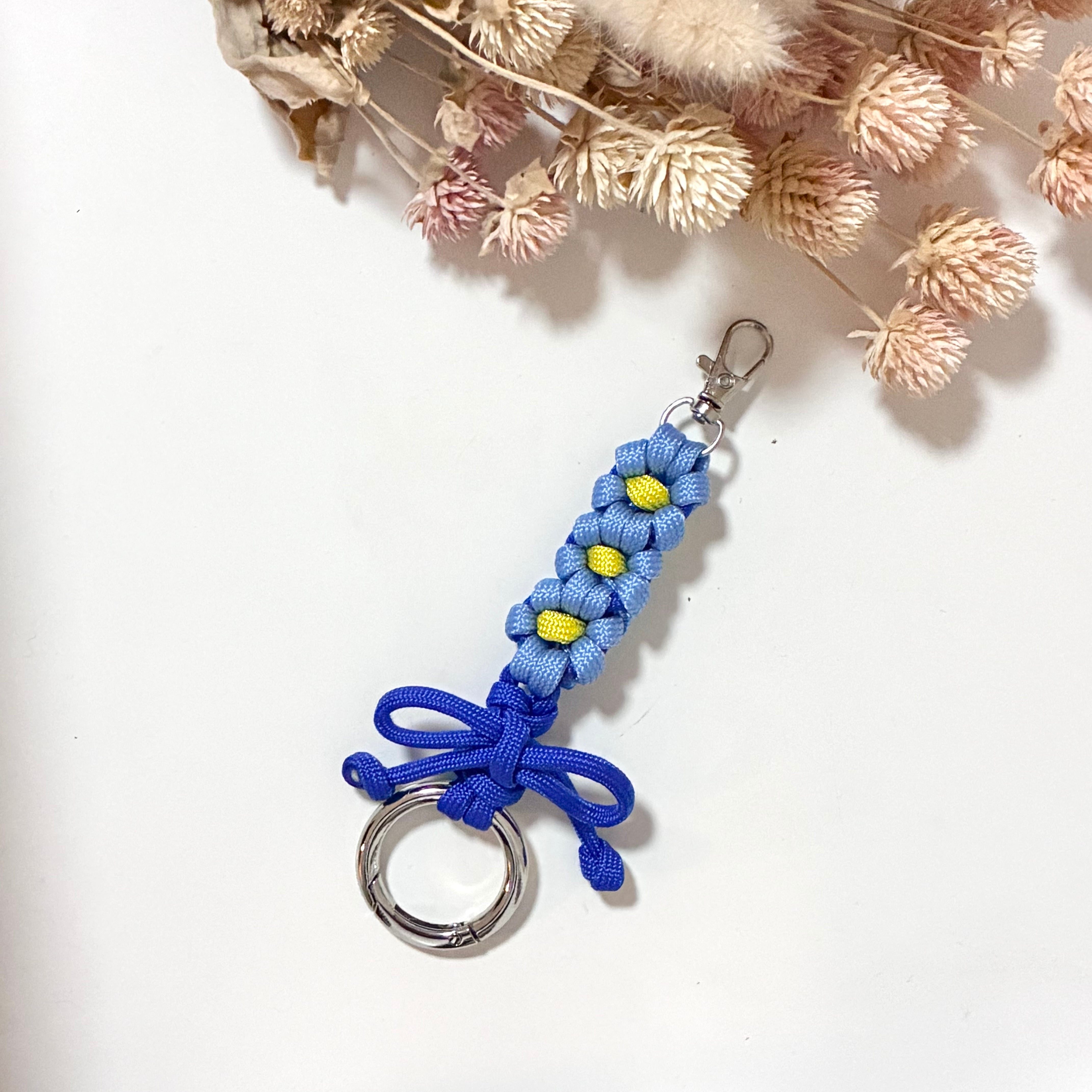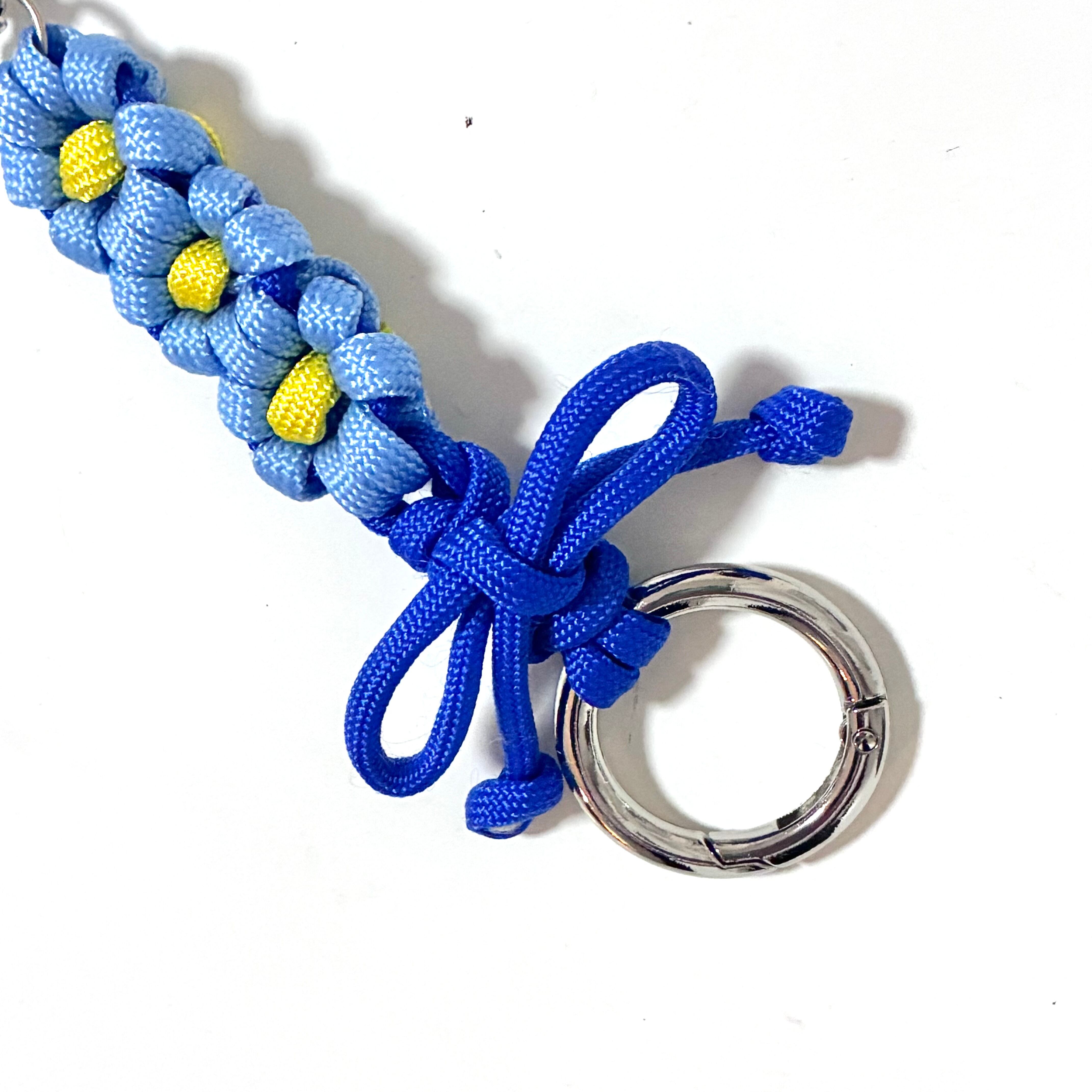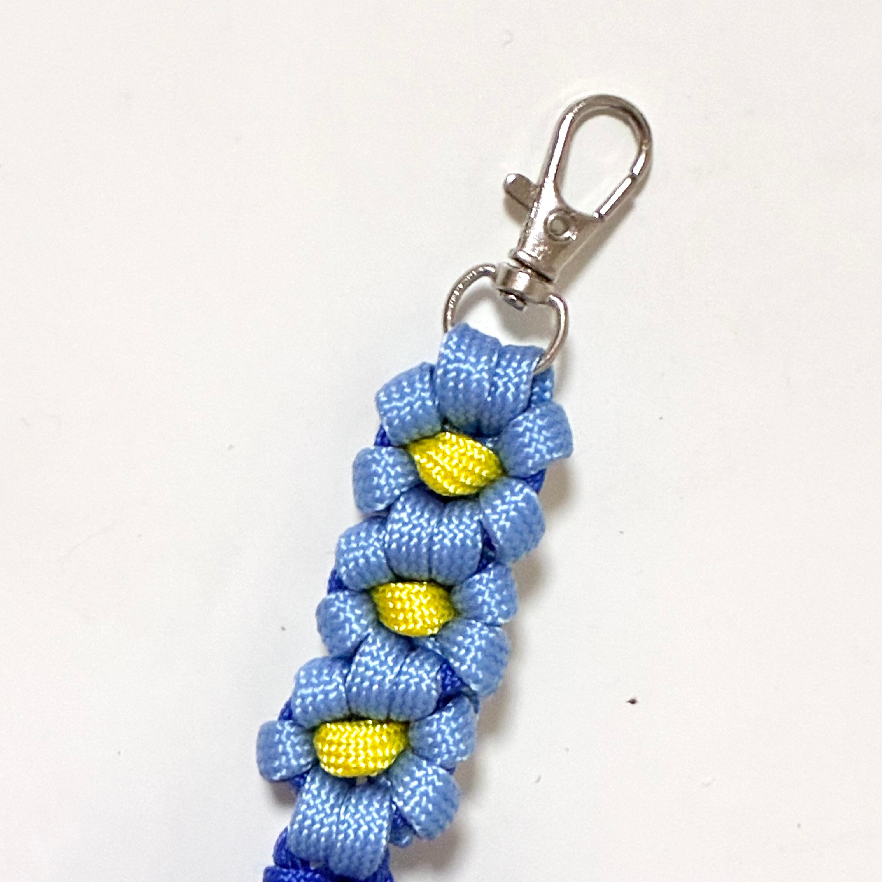 パラコードで作ったお花のキーホルダーです。下側にもカナビラを付けていますので、繋げて使う事も可能です。